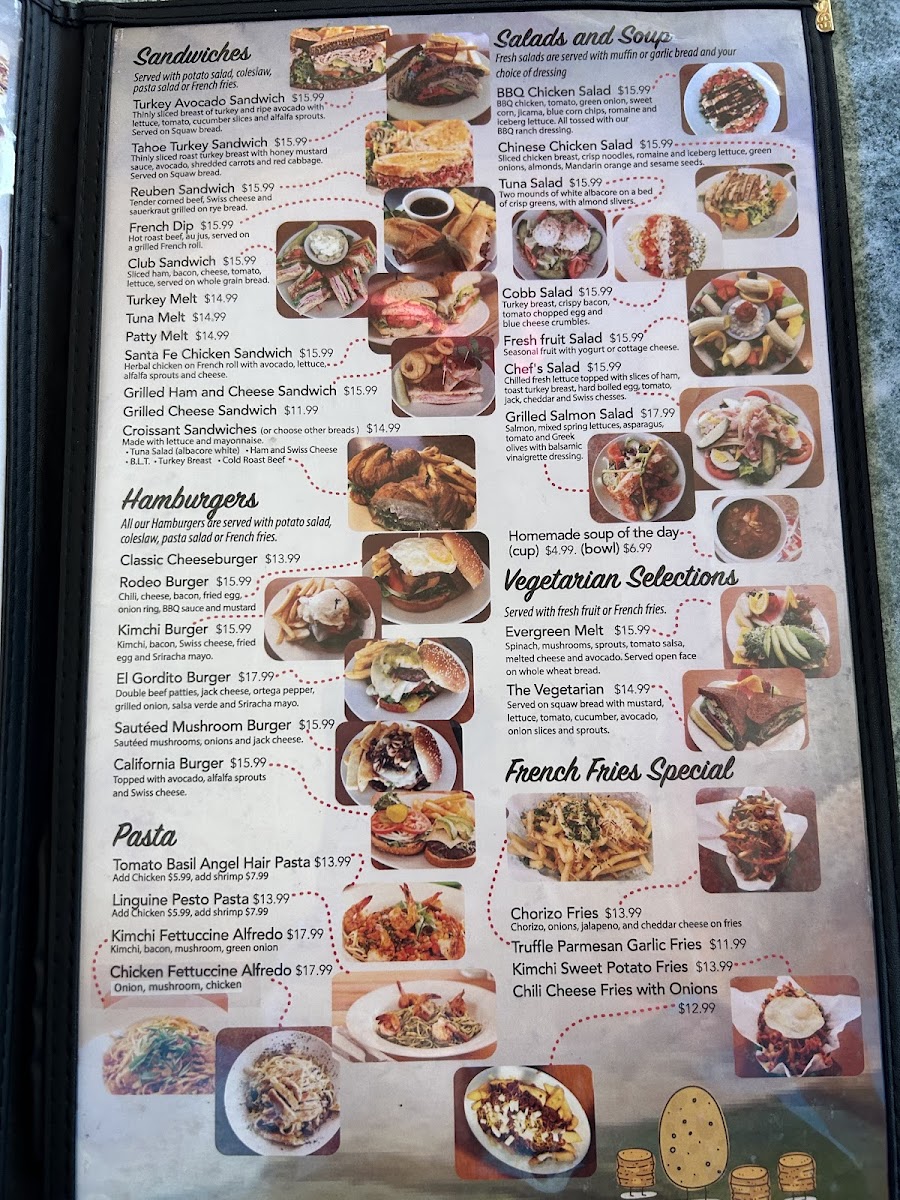 Thinly sliced breast of turkey and ripe avocado with lettuce, tomato, cucumber slices and alfalfa sprouts. Served on squaw bread.Served with potato salad, cole slaw, pasta salad or french fries.