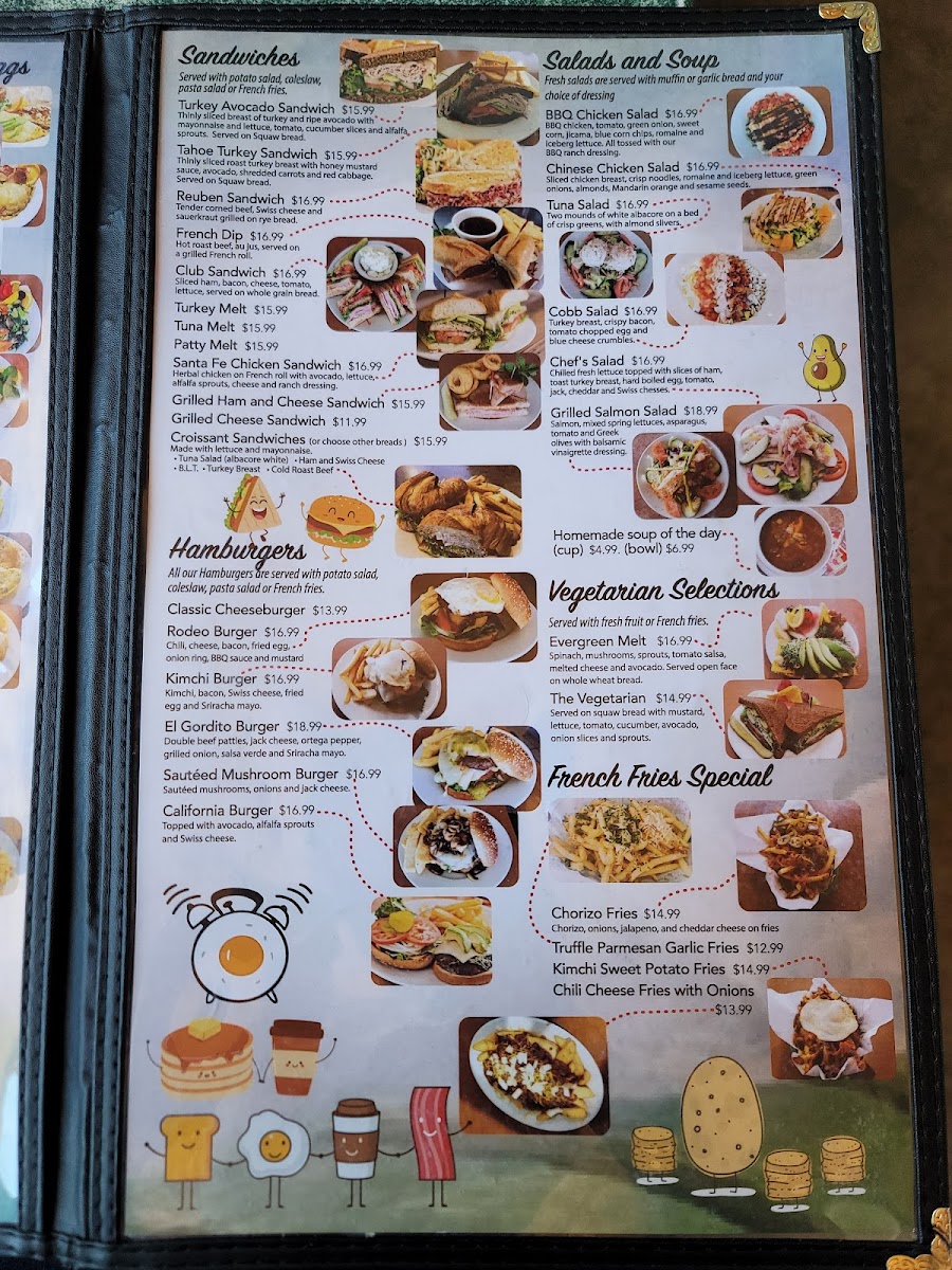 1/3 lb. Angus beef, beef chili, cheese, bacon, fried egg, onion ring, BBQ sauce and mustard.Served with potato salad, pasta salad, coleslaw or french fries.